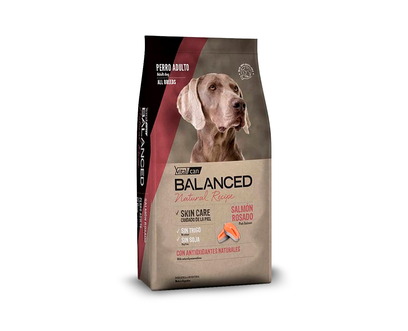 BALANCED NATURAL RECIPE SALMÓN ROSADO. Receta monoproteíca a base de salmón rosado que contribuye a reducir las reacciones alérgicas a otras fuentes de proteína. El plus de Omega 3 contribuye a mantener la salud intestinal y cutánea.